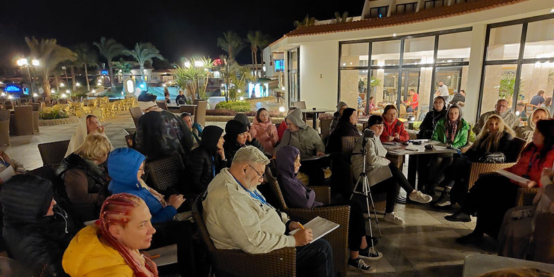 Ja nii me õpime:  Pikad päevad hommikust kuni õhtu hiliste tundideni seilame punasel merel paadiga, õpime päeval rannas, kõrbes või raamatukogus ja kui väga põnevaks läheb, siis jätkame ka pärast päikeseloojangut.