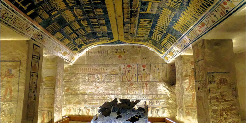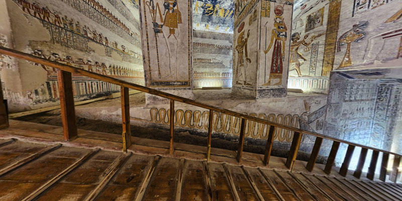 Hauakambri pikkus on ligi 104 meetrit, koos mitmete koridoride, saalide ja kõrvalruumidega. Dekoratsioonid on väga rikkalikud. See hauakamber on kogu universumi mudel koos astronoomilise laega, kus kujutatakse jumalannat Nut, kes “neelab päikese” ja sünnitab selle taas. Pikk käik oli rituaalne tee läbi surma, kus iga joonistus oli loits. Haua viimases kambris on kujutatud “jumalate nõukogu”, kus tehti rituaale ja loeti loitse …..